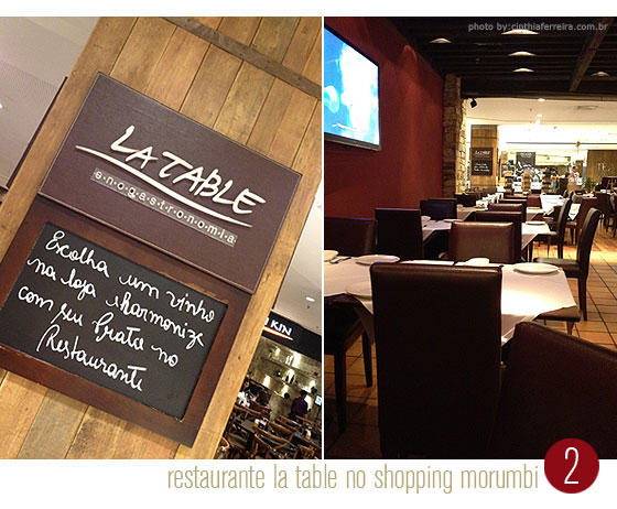 Eu gosto bastante do shopping Morumbi pela variedade de lojas, mas adoro mesmo do espaço gourmet do shopping. O restaurante La Table fica bem do ladinho da entrada vip e tem um cardápio delicioso. O ambiente é agradável e mais afastado da agitação da praça de alimentação.