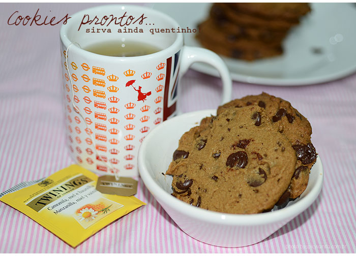 O meu noivo comeu muito e adorou, ele é AMERICANO, ou seja, a receita foi aprovadíssima!!!!!! Ele tomou um copo de leite gelado, para acompanhar os cookies!!!!!