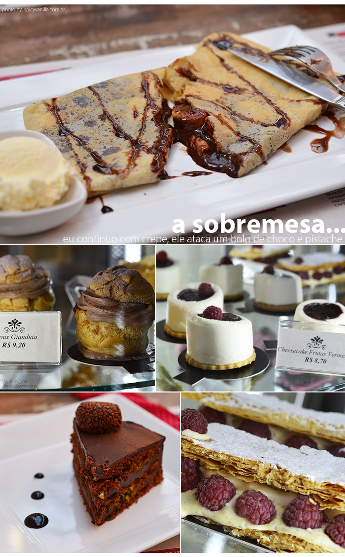 Na hora da sobremesa a coisa fica bem complicada. Eu como formiguinha que sou, nunca sei se me jogo em um dos graciosos doces da vitrine ou peço um bolo ou crepe.