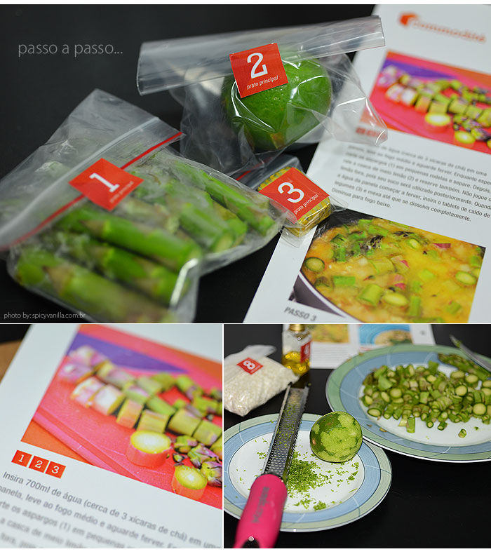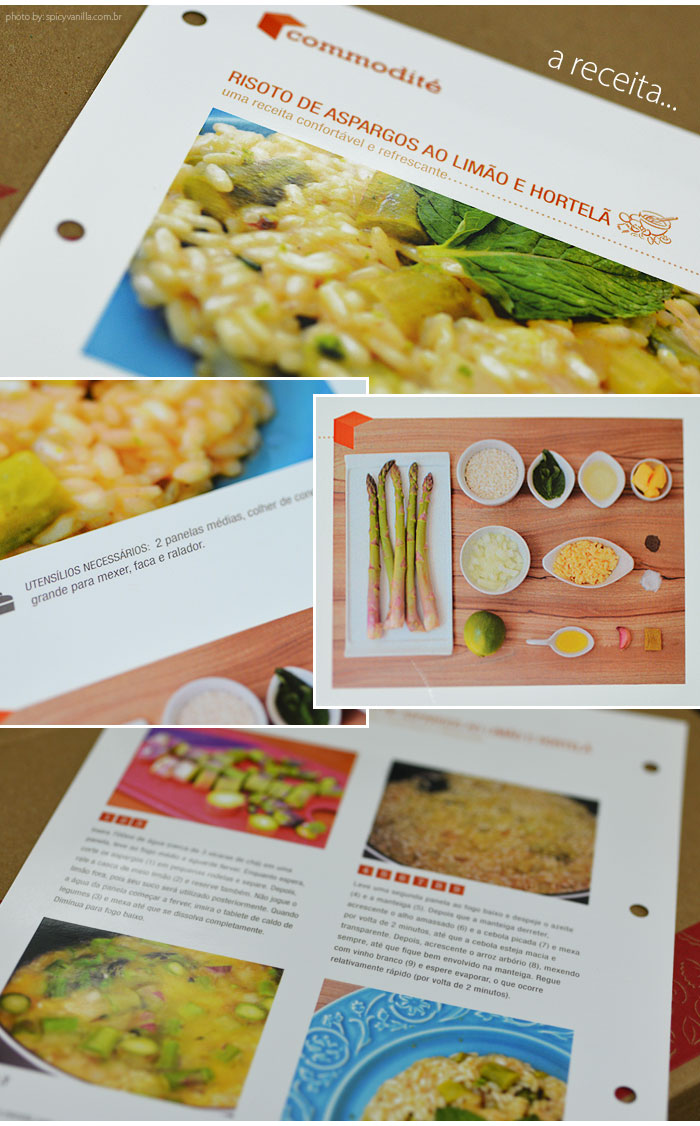 A minha caixa veio com os ingredientes e a receita do Risoto de Aspargos ao Limão e Hortelã para 2 pessoas ( é esta aqui).