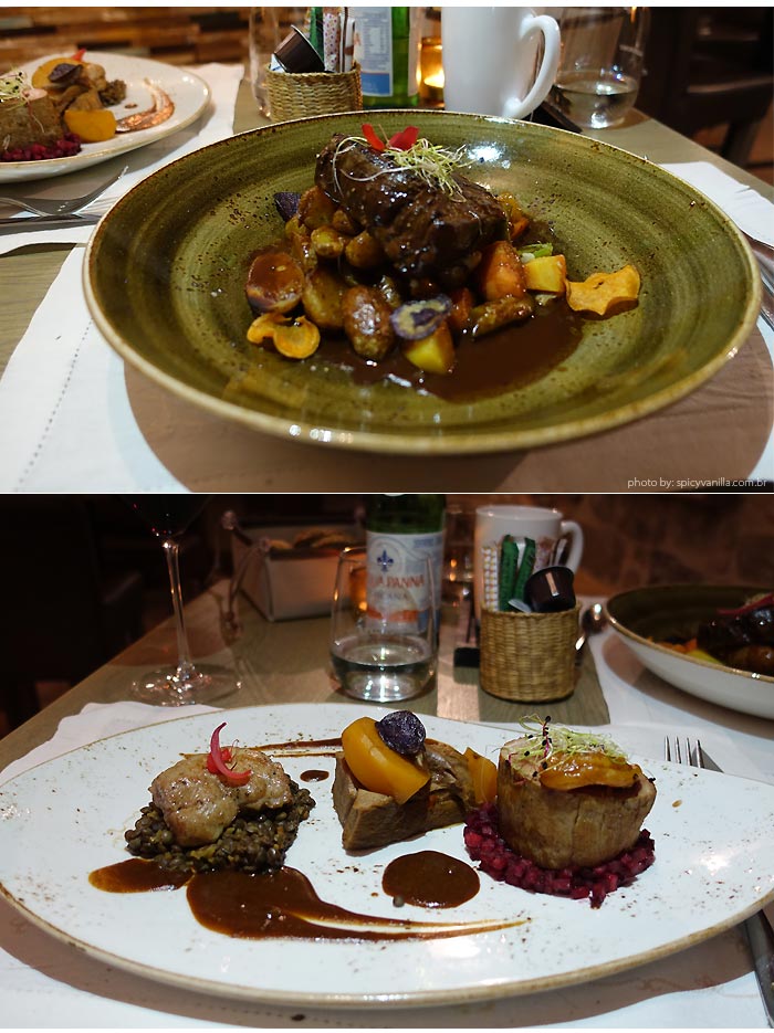 Cada prato, desde a entrada até a sobremesa, é composto por 3 opções. Então se você escolhe o prato de carne, terá três porções feitas com carne em um mesmo prato. Tem coisa mais incrível que isso ?