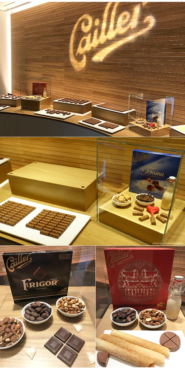 Lá também há uma cafeteria servindo várias delícias e o famoso chocolate quente Cailler.