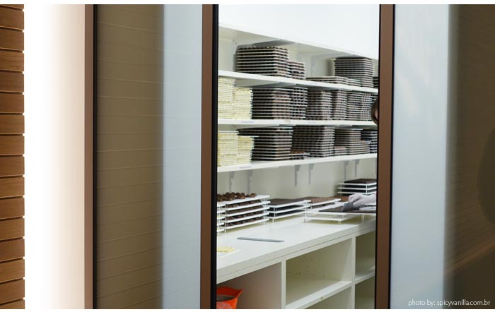 Nesta área conseguimos ver uma das máquinas com robôs embalando os chocolates em miniatura e pegá-los direto da fonte.