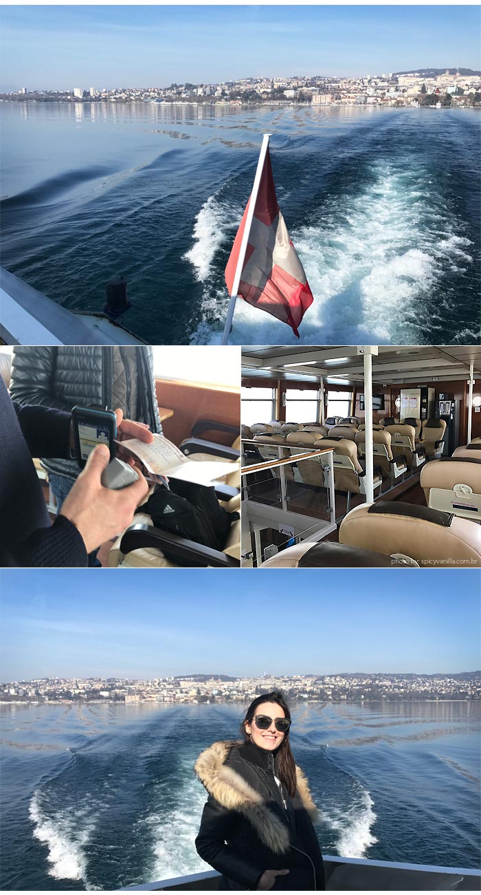 Para sair de Lausanne e ir até Évian, pegamos um barco que faz o trajeto várias vezes ao dia.
