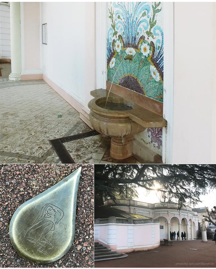 Depois de comer fomos andar pela cidade e ver a fonte da água Evian onde os visitantes podem beber água. O espaço fica no centro da cidade, do lado do parque e tinha uma fila pequena pois estava bem frio. Imagino que no verão o local deve ser lotado.