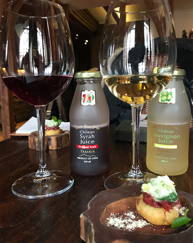 Dica de uma leitora foi experimentar os sucos dos vários tipos de uvas. Opção para quem não bebe álcool. Acho que são 5 tipos de uvas. O Syrah era bem bom, já o Sauvignon, achamos doce demais. Mas ambos tem o gosto puro da uva.